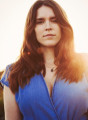 Ze schoof een paar oranje krullen achter haar oren.