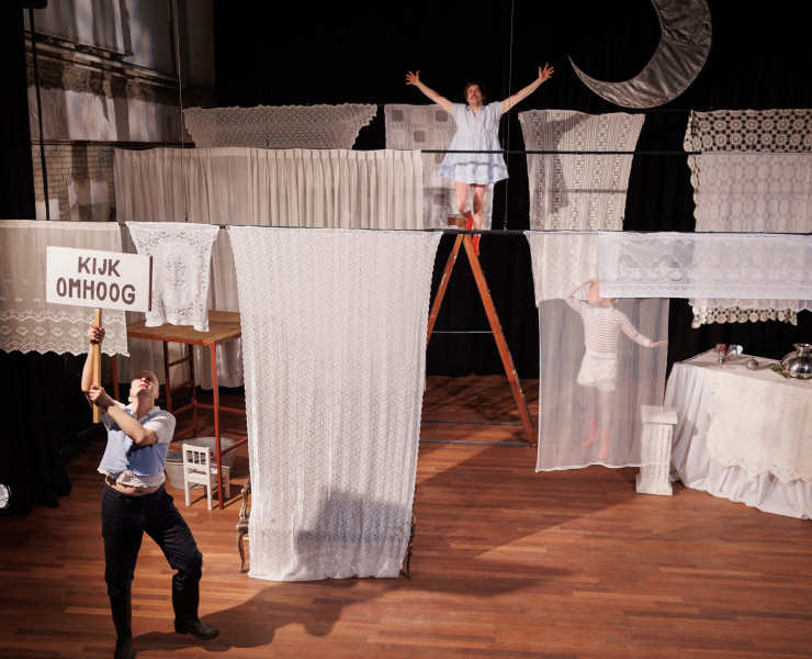 Maar regels zijn er ook om aan te passen en te doorbreken, en waar komt die spanning beter tot zijn recht dan op het podium in het theater, achter dat rode zware doek waar alles kan? Het literaire van het theater zit ‘m denk ik in de poëzie van vorm, sfeer, mise-en-scène en gevoel vertaald naar spel en beleving.