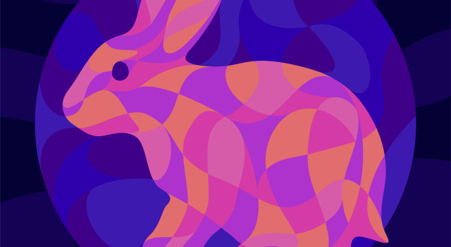 Daar lag de haas, van de standaard gevallen (of getrokken?), op de grond. Hij dacht dat hij mieren zag.