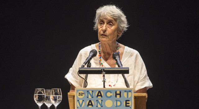 Dit jaar is het 45 jaar geleden dat de eerste Nacht van de Poëzie plaatsvond in Vredenburg, hoewel we -vanwege covid en verbouwing- pas toe zijn aan de 42ste editie. Yentl van Stokkum, de dichter die vorig jaar in de kleine uurtjes afsloot, mag dit jaar beginnen, direct gevolgd door een dichter die er vanaf de eerste Nacht in 1980 bij is geweest: Judith Herzberg. Zij hoeft alleen Rutger Kopland voor zich te dulden in de ranglijst van dichters met de meeste Nachtoptredens allertijden; dit jaar zal ze voor de tiende maal het podium betreden. Bovendien is de optimistische ‘nachtregel’ dit jaar van haar hand: ‘Overal smelt het zwelt het glimt het - nu gaan de dingen weer beginnen.’ Kijk, vooruitlopend op de komende editie, naar 10 memorabele optredens van Judith Herzberg uit 45 jaar Nacht.