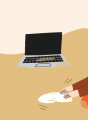 Om bij de toiletten te komen moest hij zijn grote lichaam om de laptoptafel heen manoeuvreren, en daarbij stootte hij de chai latte van de jongen met de knot om. Hij riep om een doekje, depte de tafel met servetten, putte zich werkelijk uit in verontschuldigingen. Hij was áárdig, mijn wisent. Zie je wel, deed ik naar de vrouw achter haar laptop. Maar zij zag nog steeds iets wat haar niet zinde. Het zint me niet, deed ze. De jongen met de blauwe trui was opgestaan, zijn koptelefoon hing weer om zijn hals. Hij hield zijn laptop in zijn handen, ongedeerd, rolde met zijn ogen, waar mijn minnaar pissig van werd.