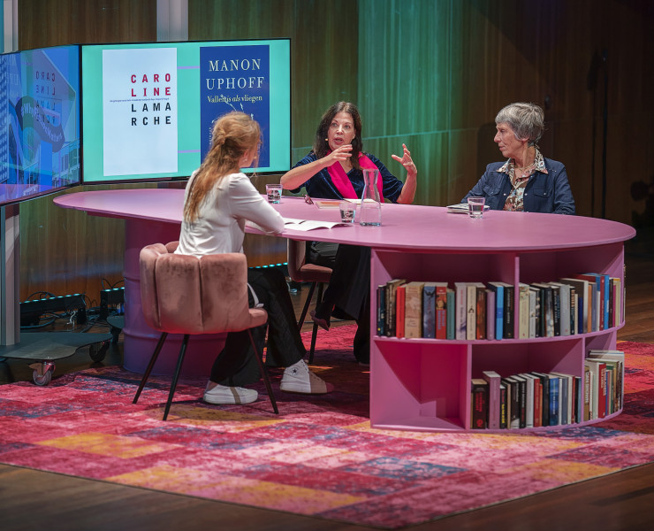 Manon Uphoff (1962) is een gelauwerd schrijver, scenarist en beeldend kunstenaar. Ze studeerde Literatuurwetenschap en debuteerde in 1995 met de verhalenbundel Begeerte. Hierna volgden vele boeken, verhalenbundels, romans en novellen. Met haar meest recente boek Vallen is als vliegen (Querido) bereikte ze een groot lezerspubliek en belandde ze op de shortlist van zowel de Bookspot Literatuurprijs als de Libris Literatuurprijs. Vallen is als vliegen is vertaald in het Spaans, Engels, Hongaars en belandde op de longlist van de Dublin Literary Award. In december 2023 reisde ze langs de sporen van de Russische vernietiging in Oekraïne, waarover ze verslag deed in De Groene Amsterdammer.